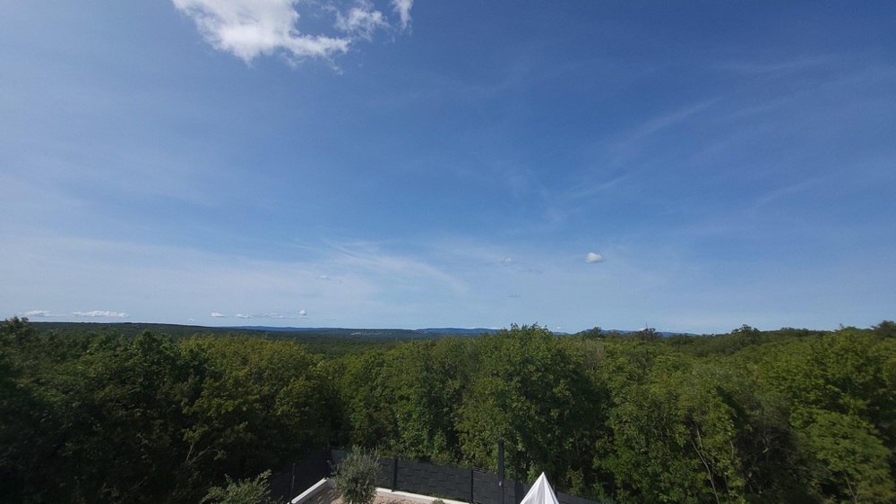 Vom Obergeschoss besteht ein schöner Blick auf die mediterrane Umgebung bis zum Meer. Im Außenbereich der Villa befinden sich ein Swimmingpool, ein Barbecue Bereich sowie mehrere Parkplätze.