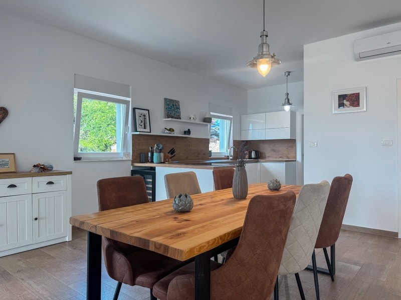 Bei diesem Angebot handelt es sich um eine moderne Villa mit Swimmingpool und schönem Meerblick in ruhiger Lage bei Labin im Osten Istriens.