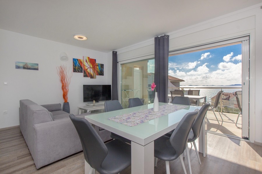 Bei diesem Angebot handelt es sich um eine Villa mit fünf Appartements in außergewöhnlicher Lage mit wunderschönem Blick auf das Meer und die Kornaten, Region Murter, Insel Murter.