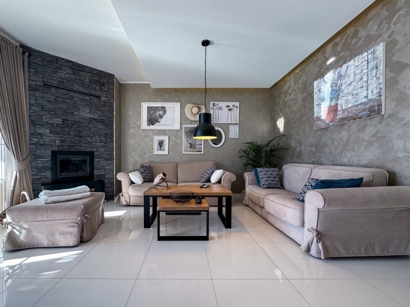 Die Villa ist klimatisiert, möbliert und sie verfügt über Fußbodenheizung. Im Außenbereich gibt es einen schönen Swimmingpool und Terrassen.