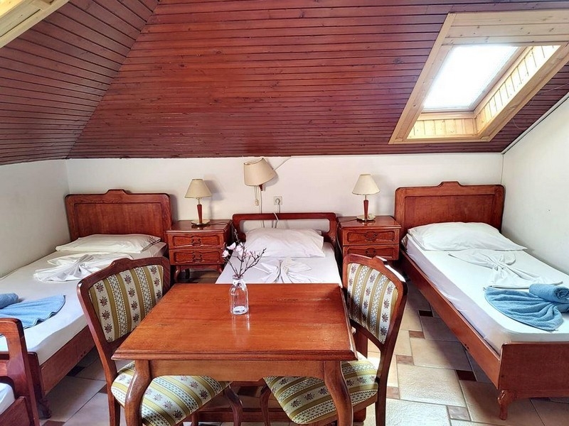 Das Haus verfügt über acht Dreibettzimmer, vier Vierbettzimmer sowie ein ca. 50 m² großes Apartment mit zwei Schlafzimmern plus Wohnzimmer (ideal als Unterkunft der Eigentümer oder zusätzliche Gästeunterkunft).