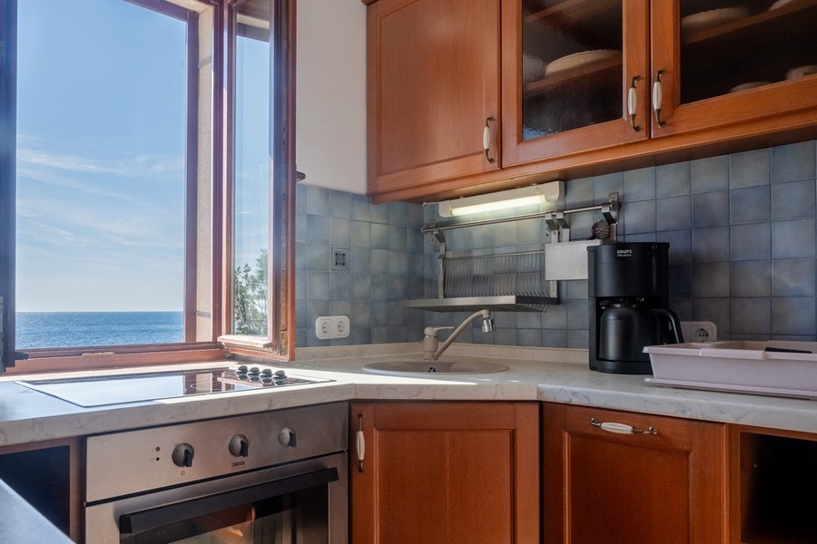 Die Wohnung befindet sich im ersten Obergeschoss eines mediterranen Wohngebäudes direkt am Wasser. Vor dem Gebäude gibt es eine wunderschöne Terrasse mit traumhaftem Meerblick - zur gemeinschaftlichen Nutzung der Bewohner.