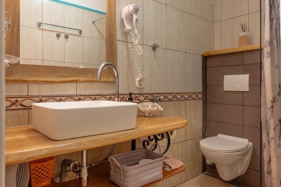 Die Wohnung befindet sich in der ersten Meereslinie und das Gebäude verfügt über eine gemeinsam genutzte Terrasse direkt am Ufer. Diese Wohneinheit befindet sich im zweiten Obergeschoss (oberste Etage) und sie bietet eine Wohnfläche von ca. 47 m² mit einem Schlafzimmer, einem Badezimmer und einem Wohnbereich mit Küche und Essbereich.
